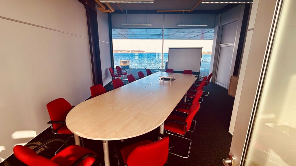 Vom großen Konferenzraum haben Sie eine herrliche Aussicht auf die Wismarer Bucht und die Wismarer Altstadt. Der Raum ist mit vielfältiger Technik, wie Beamer und Soundanlage ausgestattet und verfügt über eine große Außenterrasse mit Blick auf die Ostsee.